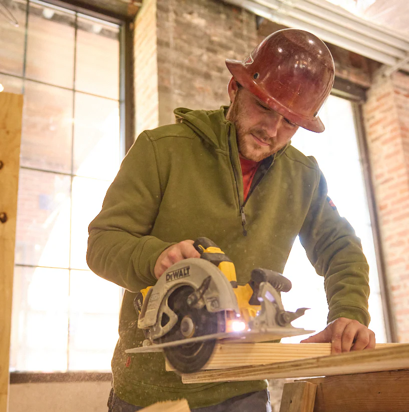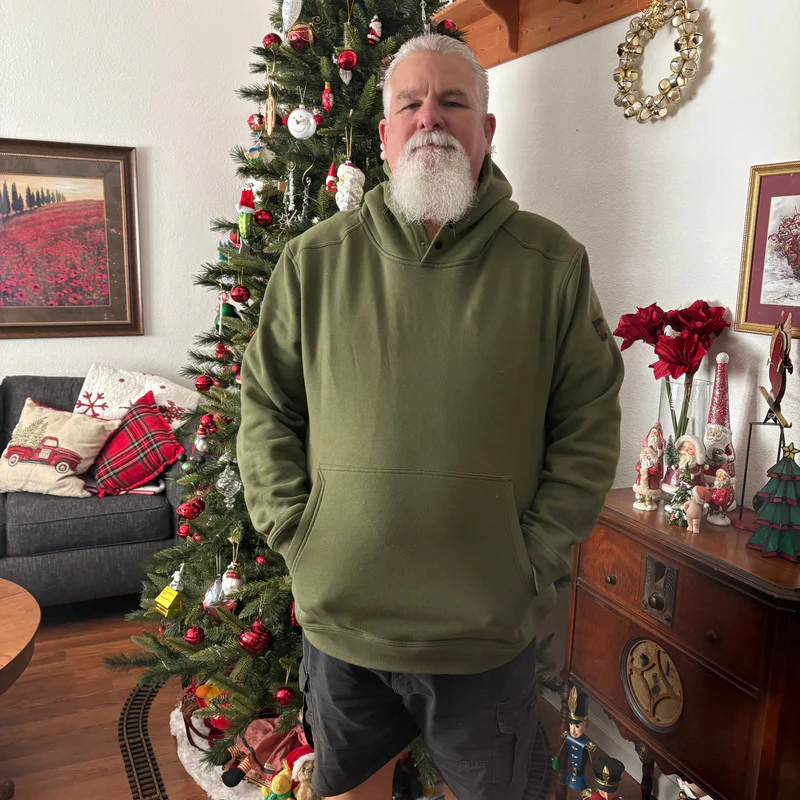 The Shevlin Hoodie is built from a durable midweight fabric that brings comfort and performance to the jobsite. The side pockets are big enough to warm your hands and stow your gear, and there is a hidden tech pocket on the right side to securely stash your cell phone. The Shevlin has an industry-leading Durable Water Repellent (DWR) coating that repels water, mud, and oil - plus a hard hat-compatible hood and button snaps at the neck to shield you from cold winds while eliminating the safety hazard of drawstrings that could catch in equipment.