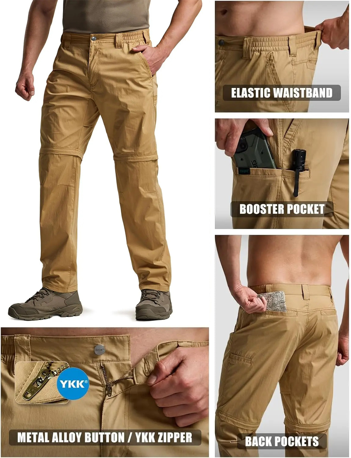 Men's Convertible Cargo Tactical Pants, Water Resistant Outdoor Hiking Pants