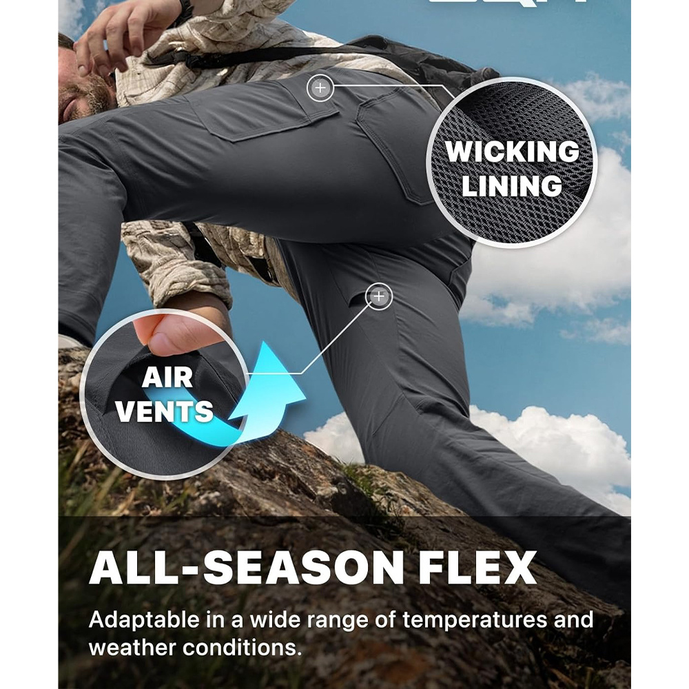 • Men's Cool Flex Tactical Pants, Water Resistant Lightweight Stretch Cargo Work Hiking Pants