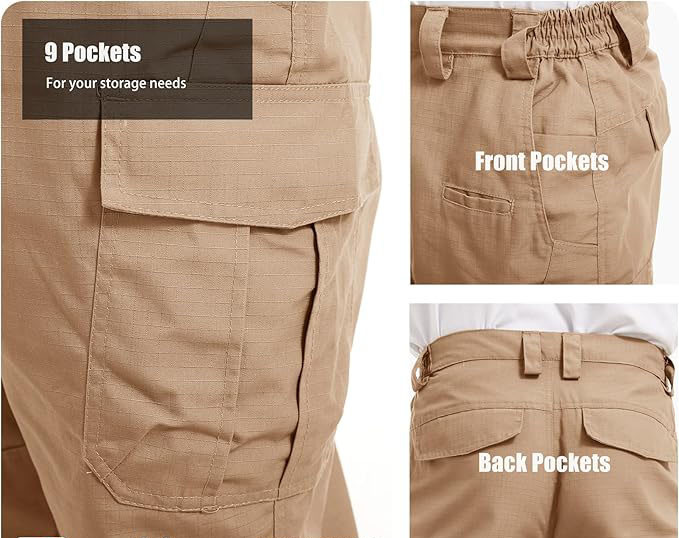 • Men's Ripstop Tactical Pants, 9 Pockets,Water Repellent, Cargo Pants for Work, Hiking, Hunting