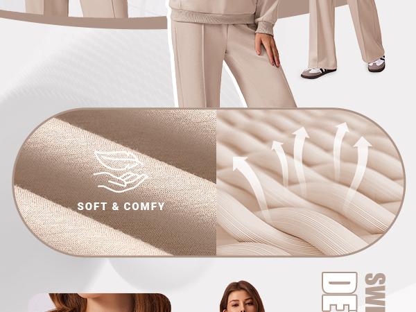 • 2-Piece Outfit: Includes pullover top with pockets + wide-leg pants with elastic drawstring waist.